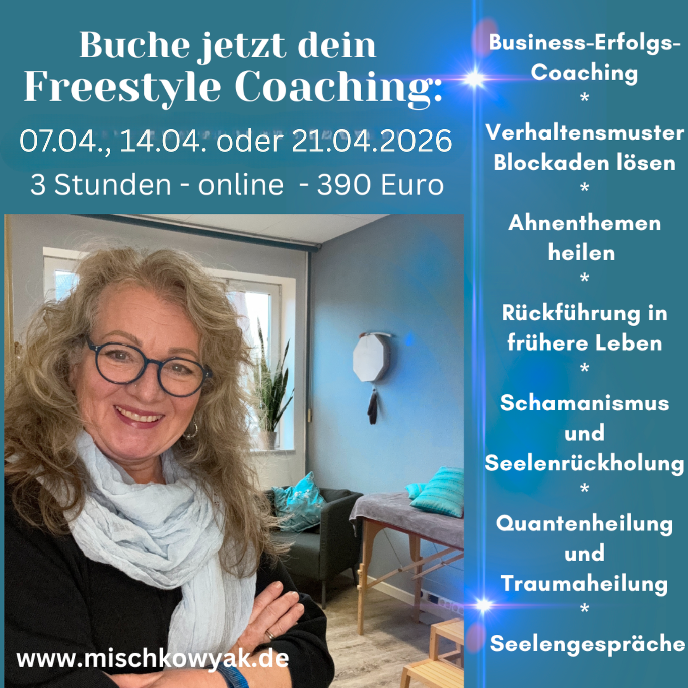Wir haben 3 volle Stunden gemeinsam für dein Thema. Die ganze Palette an spirituellen Werkzeugen steht dir durch mich zur Verfügung.